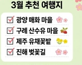 #3월꽃구경 #국내봄여행지 #매화개화시기 #산수유축제 #유채꽃명소 #3월여행추천 #개화지도 #인생샷명소 #봄꽃축제 #광양매화마을 #구례산수유마을 #제주도유채꽃